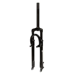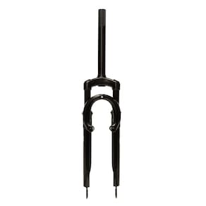 - Fabricado em aço 21.1mm - Curso de 55mm - Medidas: comprimento do canote 185mm, sendo 65mm com rosca, para suporte de guidão 21.1mm - Indicado para bicicletas aro 26 - Tipo de amortecimento: mola - Suporte para freios a disco e v-brake - Composição: canelas, ombro e tubo interno de aço - Cor: Preto