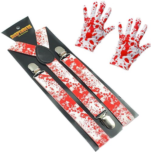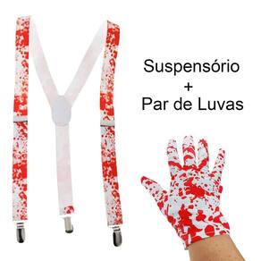 Suspensório Temático Halloween Modelo Sangue Vampiro + Par de Luvas.