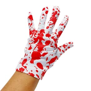 Leve também 1 par de luvas brancas com manchas vermelhas completando o visual.