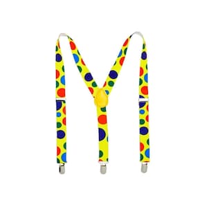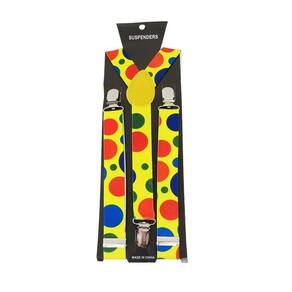 Suspensório palhaço amarelo com bolas coloridas fantasia tamanho: adulto contém: 1 unidade composição: poliéster com alça ajustável atenção: imagem meramente ilustrativa. Pode ocorrer mudanças no tom da cor para o produto real ou mudanças na embalagem sem aviso prévio por parte do fornecedor/fabricante.