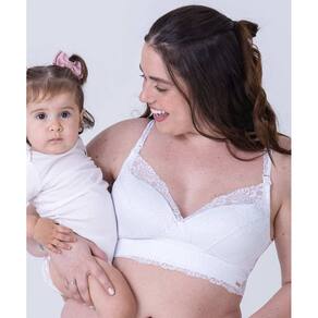 O sutiã de amamentação em renda e com bojo foi pensado particularmente para esse momento especial da vida da mulher. O sutiã tem alças prolongadas em renda e um design que alia o conforto para a mamãe com a praticidade do click de abertura – abrir e fechar a parte da frente desse tipo de lingerie é tarefa fácil e rápida. As laterais larguinhas e as costas diferenciadas dão um toque especial ao modelo de sutiã. Sem aros e com bojos superleves, a peça sustenta sem apertar os seios. A base reforçada e o interior do cós, forrado em microfibra, completam o conforto.