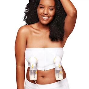 Usar o Sutiã Para Extração Com Maõs Livres Hands Free Medela dá a você a liberdade de realizar outras atividades ou simplesmente relaxar enquanto extrai o leite para o seu bebê. O sutiã para extração com maõs livres foi feito pensando em seu conforto e conveniência, com um design de top sem alças e sem costura, proporcionando um ajuste confortável e amplo suporte para todo o seio. O material elástico adaptável, com toque suave, apoiará toda a jornada de extração de leite materno, adaptando-se ao seu corpo em constante mudança.