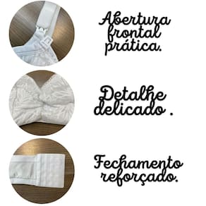 Material: Algodão puro e macio que proporciona conforto e respirabilidade durante todo o dia.Detalhes em Renda: Toque feminino e sofisticado que adiciona elegância ao design.Suporte Reforçado: Estrutura robusta que garante sustentação segura para os seios, ideal para o período de amamentação.Suporte Adequado: Design reforçado com alças largas que oferece a sustentação necessária, aliviando o desconforto e proporcionando segurança.Fecho Frontal Prático: Facilita o momento da amamentação, permitindo um manuseio fácil e rápido.Adquira já o seu Sutiã de Amamentação Branco de Algodão com Renda e viva a experiência da amamentação com o máximo de conforto e estilo. Aproveite esta oferta especial e sinta-se confiante e confortável em cada momento!