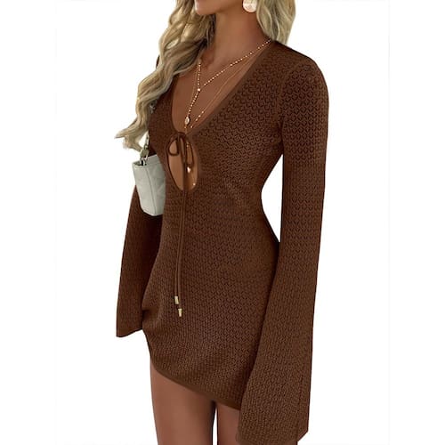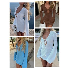 - Características: saída de praia feminina de crochê, mangas compridas, laço frontal, vazado, malha. Este maiô feminino é perfeito para praia, férias, uso diário.