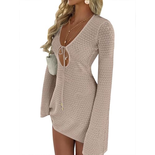 - Características: saída de praia feminina de crochê, mangas compridas, laço frontal, vazado, malha. Este maiô feminino é perfeito para praia, férias, uso diário.
