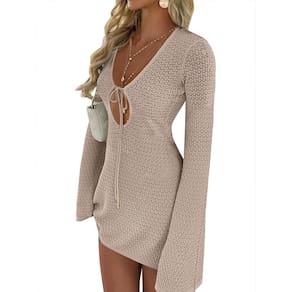- Características: saída de praia feminina de crochê, mangas compridas, laço frontal, vazado, malha. Este maiô feminino é perfeito para praia, férias, uso diário.