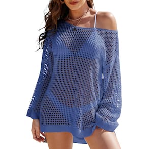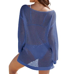 Buauty Saída de praia feminina de crochê | Roupa de banho de manga curta de tricô para praia, Azul - Estilo versátil: perfeita para férias, esta saída de praia de crochê funciona como um elegante vestido de praia ou uma camada leve para suas roupas de verão. Combine sem esforço com maiôs ou trajes de banho para um visual chique à beira-mar ou à beira-mar - Design de crochê: o elegante padrão de cobertura de crochê oco adiciona um toque sexy e elegante, perfeito para férias na praia, descanso à beira da piscina ou passeios de verão - Tecido: Feita com tecido de malha macio e respirável, esta saída de praia mantém você fresca e confortável durante os dias ensolarados na praia ou na beira da piscina. Ideal para combinar com roupas de banho femininas ou vestidos de verão para mulheres - Características: Design de saída de banho Decote redondo grande, manga comprida, frente curta e bainha traseira longa, comprimento mini, saída de praia transparente sexy - Fácil de cuidar: projetada para mulheres em movimento, esta saída de banho é leve, fácil de embalar e resistente a rugas. Lavar à mão para manutenção sem esforço, garantindo que permaneça tão deslumbrante quanto sua saída de praia favorita para mulheres 2025