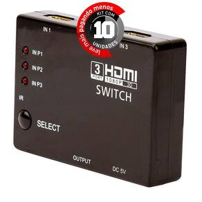 Switch 3x1 hdmi full hd 1080p 3d com controle - kit com 10