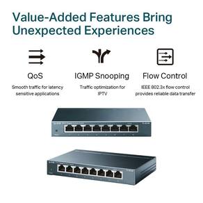Plug and Play, Amplie sua Rede Gigabit: Switch de Mesa Gigabit de 8 Portas. Mais Facilidade para seus Negócios: O Switch de Mesa TL-SG108 oferece uma maneira fácil de aumentar a velocidade de sua rede e conexões backbone. Quer você esteja em casa ou no escritório, o TL-SG108 ajuda-o a gerenciar seus negócios de forma rápida e fácil, a qualquer hora.