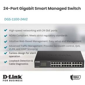 D-Link Switch gerenciado inteligente Gigabit de 24 portas | Gerenciado pela Web | Diagnóstico de cabos | Compatível com NDAA - (DGS-1100-24V2)