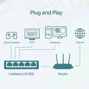 A tecnologia Plug-and-Play do LS1005 garante que a configuração seja intuitiva e sem complicações. Ilumine sua rede com os recursos Auto-MDI/MDIX, que permitem conectar cabos crossover ou straight-thru sem preocupações sobre o tipo de cabo utilizado. Além da praticidade, o LS1005 se destaca pela tecnologia TP-Link Green, que otimiza o consumo de energia de acordo com as necessidades da sua rede.
