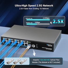 - Cliente de serviço: chaque commutateur réseau GigaPlus 2.5G a été rigoureusement testé pour sa fiabilité, sa qualité et ses performances. Nous fournissons une assist technique à vie pour l'ensemble du produit.