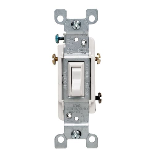 Leviton 15 Amp, 120 Volts, Interruptor silencioso CA de 3 vias emoldurado, grau residencial, aterramento, Quickwire Push-In e com fio lateral, pacote com 6, 1453-2WM, branco