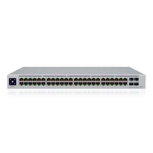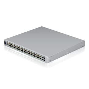 O Switch Pro 48 é um switch totalmente gerenciado com (40) portas GbE, PoE+ RJ45, (8) portas GbE, PoE++ RJ45 e (4) portas 10G SFP+. O USW Pro 48 combina um rico conjunto de recursos de Camada 2 com ferramentas avançadas de Camada 3, incluindo roteamento entre VLANs, roteamento estático e um servidor DHCP.
