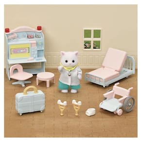 O Primeiro Conjunto Médica da Vila conta com tudo o que você precisa para brincar de ser uma médica, incluindo uma boneca com jaleco branco, uma máquina de check-up e outros equipamentos médicos. Ajuda a se manter a saúde com as seringas incluídas, estetoscópio, cama, cadeira de rodas, remédios e outros acessórios. Combine com a Primeira Casa Sylvanian Families ou conjuntos veículo (todos vendidos separadamente) para uma brincadeira ainda mais imaginativa! A bolsa da doutora pode ser utilizada para guardar seringas, o estetoscópio e remédios. O molde de gesso pode ser posicionado em bonecos de criança. Apresentando a Mamãe Gato Persa, a Doutora Dawn. Combine com a Primeira Casa Sylvanian Families (vendida separadamente) para tornar a casa em um consultório médico! Combine com os conjuntos de veículos da Van Piquenique em Família ou da Camping Van da Família (vendidas separadamente) para tornar os carros em ambulâncias!