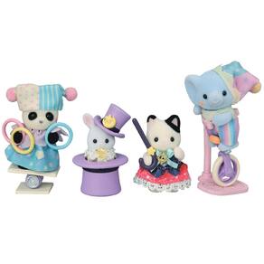 Este é um conjunto especial para comemorar os 40º aniversário da Sylvanian Families Este conjunto contém quatro bonecos de bebê e acessórios, perfeitos para um show em um parque de diversões Um show emocionante incluindo malabarismo, mágica e muito mais está prestes a começar! Este conjunto inclui acessórios e fantasias para os bebês