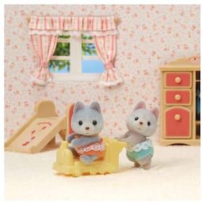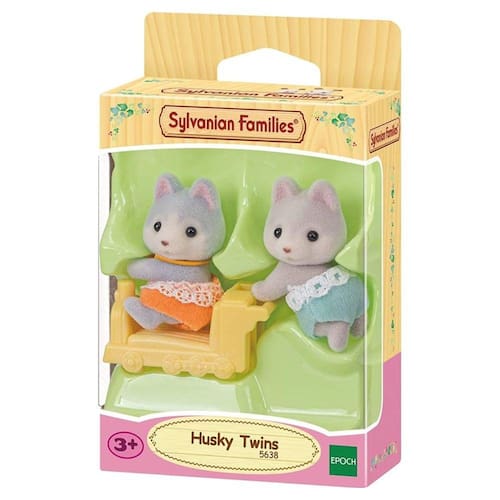 Gêmeos Huskys contém figuras de bebê Amber (Sentado) e Jeremy (Gatinha), juntamente com um carrinho de passeio (Trem). ·A figura sentada tem pêlo cinza, e a figura em pé tem pêlo castanho. ·Os gêmeos Husky (sentado e em pé) podem andar no carrinho de passeio. ·As cabeças das figuras possuem movimentos