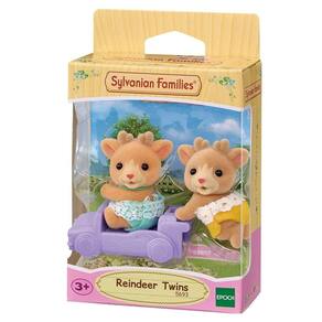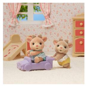 Os Gêmeos Renas incluem bonecos gêmeos e um carrinho de passeio de trenó para que eles andem. Suas galhadas podem ser menores que a de seus pais, ainda, mas isso só os torna mais adoráveis! As cabeças dos bonecos podem ser movidas. - Qualquer um dos gêmeos pode entrar no carrinho de passeio. - O carrinho de passeio incluído pode ser anexado a carrinhos de passeio de outros conjuntos de gêmeos. - Apresentando os Bebês Gêmeos Renas, Ollie (sentado) e Ginger (engatinhando).