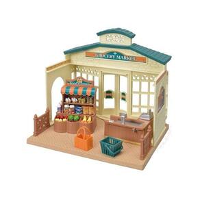 Mini Mercado Sylvanian Families O minimercado possui uma parede de tijolos, um telhado verde, um balcão de pagamento, prateleiras e vem com muitos ingredientes!Os ingredientes incluídos podem ser colocados nas prateleiras. Uma cesta de compras também está incluída, permitindo mais diversão enquanto faz compras.Os ingredientes no topo do balcão podem ser movidos para o saco deslizando a barra no contador de pagamento. As paredes e o piso da loja podem ser destacados, alterarando a direção que eles estão instalados, muda a área do chão tanto dentro como fora da loja, oferecendo muita diversão no novo espaço.Conteúdo da caixa:·Inclui muitos ingredientes.·Divirta-se ao fazer compras usando a caixa registradora que está incluída.·O piso pode ser substituído para alterar o espaço do Minimercado.