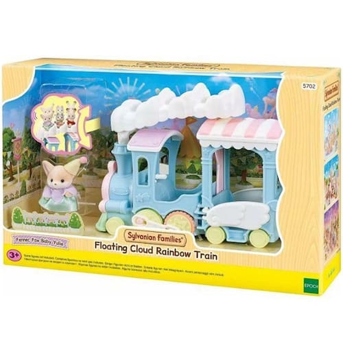 O Trem Arco-Iris Flutuando na Nuvem conta com um lindo desfile com muitas pecas moveis, junto com o bebe Raposa-do-deserto de orelhas longas.