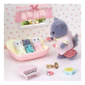 Os Trigêmeos Gatos Persas têm pelos macios e cabem juntos dormindo no berço incluso. A gatinha com roupa amarela é travessa e gosta de puxar plantas e fitas do vestido da irmã. O gatinho cinza com roupa verde adora o cheiro de menta e o som das folhas se movendo ao vento. A gatinha com a roupa rosa cresce mais rápido dos três e foi a primeira a rolar enquanto dormia.
