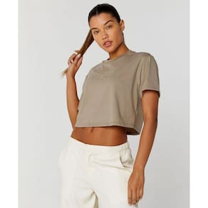 Características da peça: - Gola de ribana; - T-shirt com modelagem cropped, com modelagem mais solta, é uma peça ideal para compor looks que transitam bem entre o esportivo e o casual; - Estampa na frente traz a identidade da marca de forma sutil; - Disponível em duas cores neutras, é uma peça essencial para o dia a dia. Ean: 9000232300023