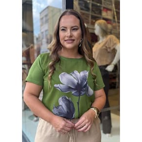Blusa T-shirt Plus Size com Estampa Floral Localizada Renove seu guarda-roupa com estilo e conforto com a T-shirt Plus Size com estampa localizada floral. Confeccionada com tecido de alta qualidade, essa peça une sofisticação, versatilidade e um toque artístico que transforma qualquer look casual em uma produção elegante. A frente da blusa é feita em poliéster liso com estampa floral marcante, que valoriza o visual e adiciona personalidade à produção. As costas são confeccionadas em malha Vicenza, garantindo leveza, elasticidade e ótimo caimento no corpo. Com modelagem ampla, gola redonda e mangas curtas, essa T-shirt é perfeita para os dias de calor, proporcionando frescor e liberdade de movimento. Ideal para compor looks com calças de alfaiataria, jeans ou saias, ela é uma opção curinga para o dia a dia ou até para ocasiões mais descontraídas que pedem charme e autenticidade.