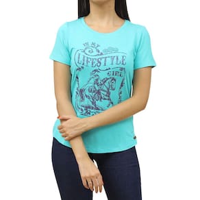 T-Shirt Feminina com Strass Verde Água Zoe Horse 37545 - M - Verde