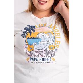 T-shirt feminina plus size elaborada em malha algodão. Possui Estampa na frente ”WAVE RIDERS It’s summer time”, leve, macia e com inúmeras possibilidades de uso. Monte looks desde casuais aos chiques, com aquele nozinho na frente, uma bermuda jeans e seu tênis favorito por exemplo e arrase! Para ficar em casa bem confortável, curtir um passeio ou trabalhar você terá a peça ideal.