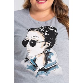 T-shirt feminina plus size elaborada em malha algodão. Possui Estampa na frente, leve, macia e com inúmeras possibildades de uso. Monte looks desde casuais ao chiques, com aquele nozinho na frente, uma bermuda jeans e seu tênis favorito por exemplo e arrase! Para ficar em casa bem confortável, curtir um passeio ou trabalhar você terá a peça ideal.