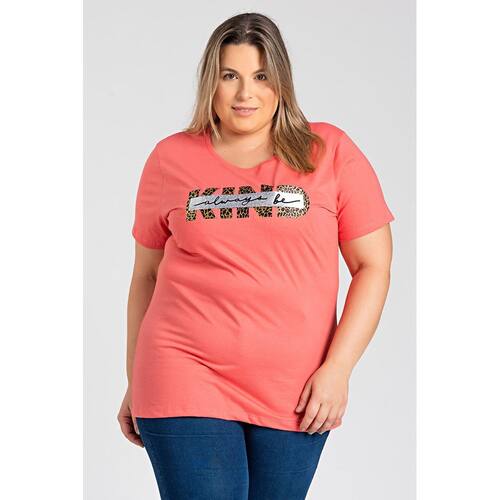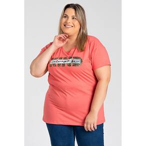 T-shirt feminina plus size elaborada em malha algodão.