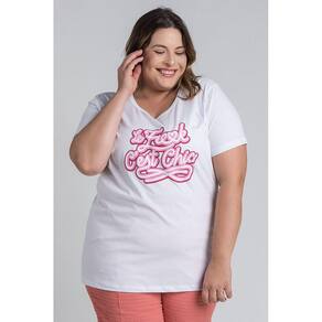 T-shirt feminina plus size elaborada em malha algodão. Possui Estampa na frente "Le Freak C'est Chic", leve, macia e com inúmeras possibildades de uso. Monte looks desde casuais ao chiques, com aquele nozinho na frente, uma bermuda jeans e seu tênis favorito por exemplo e arrase! Para ficar em casa bem confortável, curtir um passeio ou trabalhar você terá a peça ideal. Encolhimento de 5% no comprimento.