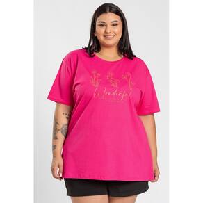 T-shirt feminina plus size elaborada em malha algodão. Possui Estampa na frente "Wonderful EXCITED ABOUT EVERYTHING”, leve, macia e com inúmeras possibilidades de uso. Monte looks desde casuais aos chiques, com aquele nozinho na frente, uma bermuda jeans e seu tênis favorito por exemplo e arrase! Para ficar em casa bem confortável, curtir um passeio ou trabalhar você terá a peça ideal.