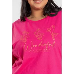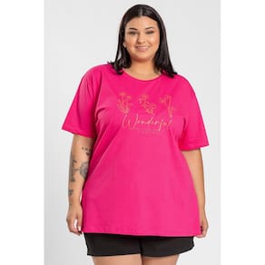 T-shirt feminina plus size elaborada em malha algodão. Possui Estampa na frente "Wonderful EXCITED ABOUT EVERYTHING”, leve, macia e com inúmeras possibilidades de uso. Monte looks desde casuais aos chiques, com aquele nozinho na frente, uma bermuda jeans e seu tênis favorito por exemplo e arrase! Para ficar em casa bem confortável, curtir um passeio ou trabalhar você terá a peça ideal.