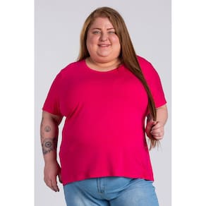 T-shirt feminina plus size elaborada em malha visco decote redondo. Peça leve, com toque macio, boa elasticidade, aquela básica que toda mulher deve ter em seu guarda roupas. Combine-a com looks casuais com seu jeans favorito por exemplo para um passeio, trabalho, dia a dia de modo geral ou até mesmo com aquela calça social e blazer de alfaiataria! Use e abuse na hora de montar seus looks sem deixar de lado o conforto e bem vestir!