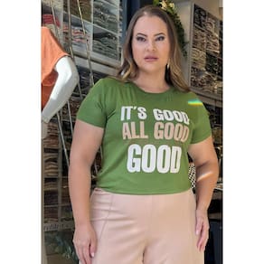 Renove seu visual com uma peça cheia de personalidade! A T-shirt Plus Size Estampada “It’s Good” é perfeita para quem busca conforto, versatilidade e estilo no dia a dia. Com modelagem tradicional e ajuste confortável ao corpo, essa blusa é confeccionada em malha macia e elástica, composta por 96% Poliéster e 4% Elastano, que garante caimento impecável. O grande destaque da peça é a estampa localizada frontal com mensagem positiva, que traz autenticidade ao look. A gola redonda e as mangas curtas completam o design moderno e prático. Ideal para composições casuais e urbanas, combina perfeitamente com jeans, calças de alfaiataria ou shorts.