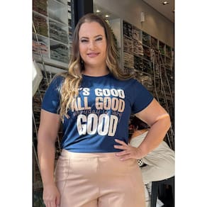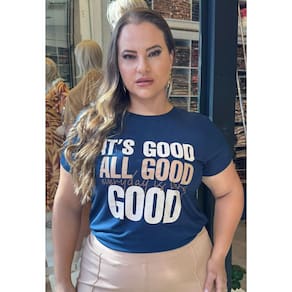 Renove seu visual com uma peça cheia de personalidade! A T-shirt Plus Size Estampada “It’s Good” é perfeita para quem busca conforto, versatilidade e estilo no dia a dia. Com modelagem tradicional e ajuste confortável ao corpo, essa blusa é confeccionada em malha macia e elástica, composta por 96% Poliéster e 4% Elastano, que garante caimento impecável.