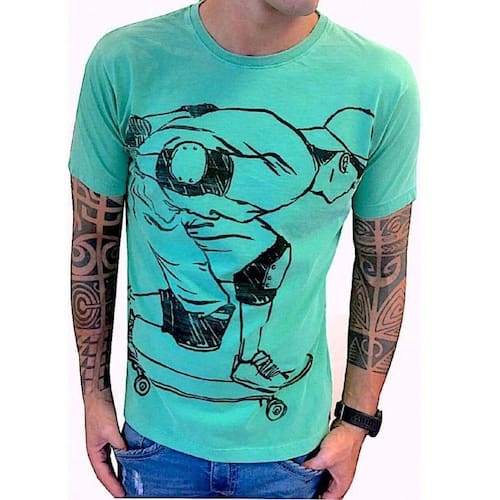 Estonada em ½ malha, 100% algodão, essa t-shirt estonada, traz uma modelagem slim e alinhada ao corpo. Elas passam por um processo de Estonagem, onde levadas à um tingimento, sendo lavadas e amaciadas, proporcionando encolhimento zero, toque macio e aspecto Vintage.