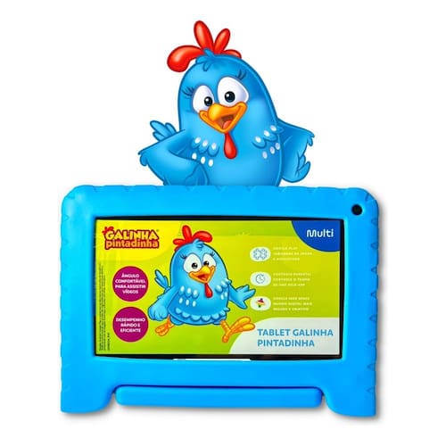 Indicado para +3 anos. Vem com case emborrachado que permite ajuste de ângulo facilitando o uso do seu pequeno!