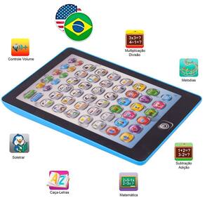 Com funções em português e inglês, o tablet ajuda no desenvolvimento das principais habilidades cognitivas e sensoriais da criança, incentivando o interesse pelos estudos desde cedo. Ideal para aprender as letras do alfabeto, números, formação de palavras, operações matemáticas simples adição e subtração , além de praticar a pronúncia correta nos dois idiomas.