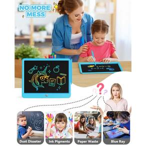 O tablet de escrita KOKODI LCD, um bloco de desenho eletrônico colorido de 25,4 cm perfeito para crianças de 3 a 6 anos de idade. Este tablet de escrita, também conhecido como quadro de rabisco, vem com uma caneta stylus e possui uma tela colorida ABS + LCD resistente a arranhões. O dispositivo é leve, pesa apenas 500 g e tem dimensões de 25 x 17,5 cm, facilitando o manuseio e o manuseio das mãos pequenas. O tablet de escrita LCD é reutilizável, apagável e requer uma bateria de íon de lítio para operação. Este brinquedo educativo e de aprendizagem é um presente ideal para aniversários e outras ocasiões, promovendo a criatividade e o desenvolvimento de habilidades motoras finas. O tablet de escrita LCD KOKODI é feito de plástico e vem em uma cor azul, com uma moldura de plástico. É recomendado para uso doméstico e adequado para meninos e meninas. - TABLET DE ESCRITA LCD DE PROTEÇÃO OCULAR: adota tecnologia sensível à pressão LCD 2022 e tela colorida LCD de 16 polegadas. Este quadro de rabisco infantil brinca sem radiação, sem brilho, seguro e confortável mesmo de usar por um longo tempo. Ambiental: a bateria do tablet de escrita e desenho tem 3-6 meses de vida útil da bateria, pode ser substituída para uso em ciclo, sem carregar ou ligar a energia. Os brinquedos de bloco de desenho podem fornecer cerca de 100.000 escritos, evitando desperdício de papel e lápis - Brinquedos de segurança absoluta para crianças – O compartimento da bateria é preso com um parafuso. Nossas crianças não têm acesso fácil à bateria do botão. Segurança para crianças. Pode haver arranhões na tela ao abrir o pacote, o que é causado pelo transporte, basta pressionar o botão apagar e a tela ficará transparente - Brinquedos educativos de aprendizagem durante a brincadeira: oferece espaço suficiente para graffiti e fácil visualização, livre a imaginação da criança, proporciona uma melhor experiência de aprendizagem pré-escolar ou escolar em casa! - Essenciais de viagem na estrada para crianças: a capa de prancheta para crianças é feita de plástico durável, adiciona um design de canto redondo que tem boa resistência a choques e resistência a quedas. O desenho colorido pesa apenas 150 gramas e tem apenas 1/7.6 cm de espessura, adequado para brinquedos de avião, atividades de carro, acessórios de jogos de viagem. - Coloração sem bagunça para crianças: os brinquedos doodle baord criam linhas coloridas de diferentes espessuras, com base na força com que você empurra com caneta, unhas ou qualquer coisa dura. Pressione o botão apagar, esvaziar o conteúdo da tela leva apenas um segundo. Também pode usar a chave de bloqueio para salvar o conteúdo. Recomenda-se usar sob luz, a linha será mais brilhante. - Brinquedos para meninos de 3, 4 e 5 anos: brinquedos perfeitos para os meninos praticarem a escrita e o desenho que os manterão entretidos. São brinquedos de sonho que podem ser úteis no carro e úteis em casa também. Realmente útil para crianças em crescimento.