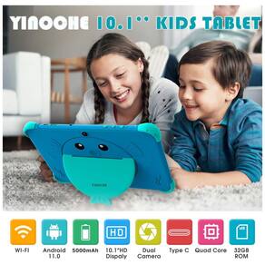 O tablet YINOCHE para crianças adota a nova atualização do processador quad core de alto desempenho e o mais sistema Android 11.0, tela sensível ao toque de 10,1 polegadas 1280x800 IPS HD que tem tela muito maior que o tablet infantil de 7 polegadas, o sistema Android 11.0 apresenta os tablets infantis pode iniciar aplicativos rapidamente, vídeo suave e excelente desempenho geral. Atende aos requisitos básicos de uso de adultos, também equipado com mais wi fi, bluetooth, câmera dupla, bateria de longa duração Capacidade de 5000mAh, 2GB RAM e 32GB ROM, Pode ser expandido até 256 GB de cartões SD para zenar fotos, música e vídeos. Um presente incrível.
