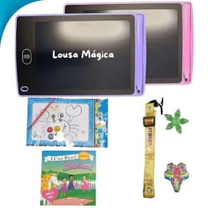 Além disso, acompanha acessórios que estimulam a criatividade, como brinquedos, conto infantil e prancheta de desenho.