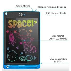 - Antes de usar. Alterne o botão de bloqueio (parte traseira do produto) para desbloquear a trava, retire a caneta e escreva diretamente na tela lcd.