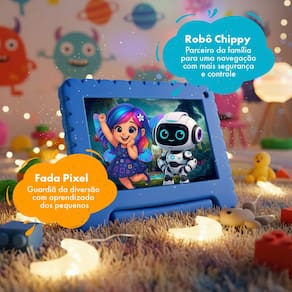 Indicado para +3 anos. Vem com case emborrachado que permite ajuste de angulo facilitando o uso do seu pequeno!