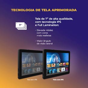 -Desempenho eficiente: Com processador Octa-Core Allwinner A523 e 3GB de RAM, você navega, estuda e assiste vídeos com fluidez. -Armazenamento de sobra: São 128GB de espaço interno para seus aplicativos, fotos e arquivos, com possibilidade de expansão via cartão microSD (slot disponível). -Tela compacta e de qualidade: A tela de 7 polegadas IPS oferece boa visualização em qualquer ângulo, ideal para estudos e entretenimento. -Android 14 Go: Sistema mais leve e otimizado, com recursos como Modo Escuro, Compartilhamento de Wi-Fi, Suporte à Tela Dividida e Bloqueio Infantil. -Conexões práticas: Possui Wi-Fi 2.4GHz, Bluetooth, entrada USB-C e saída de áudio P2 (3,5mm). -Bateria durável: Com 3100 mAh, é perfeito para uso ao longo do dia em atividades leves. -Design leve e portátil: Com apenas 240g e dimensões compactas, cabe na mochila e vai com você para todo lugar.