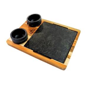 Tábua com 02 Molheiras em Pedra Sabão e Suporte G 25x25cm
