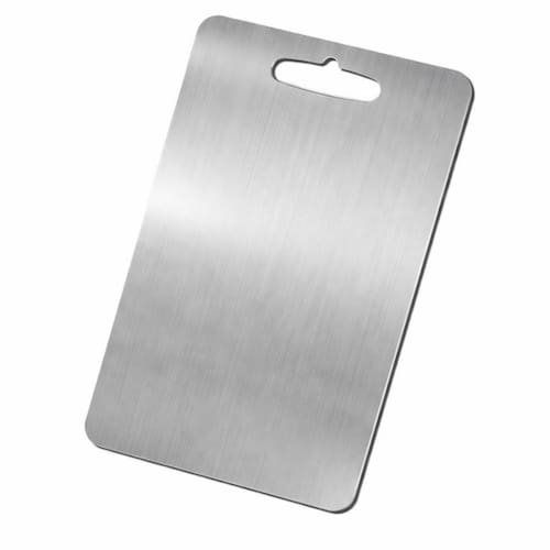 Tábua de corte fabricada em aço inoxidável 201 com acabamento escovado. Projetada para o preparo de carnes, legumes, frutas e massas, sua superfície não porosa impede a absorção de líquidos e resíduos, facilitando a higienização e evitando a retenção de odores de alimentos como alho e peixe. Vantagens Práticas: Higiene: Material que não permite a proliferação de microrganismos. Anti-Odor: Superfície metálica que auxilia na neutralização de cheiros fortes. Resistência: Composição em aço 201 com alta durabilidade mecânica. Manutenção: Limpeza rápida com água e detergente neutro. Área de Trabalho: Dimensões de 46x30cm para manuseio de grandes peças de carne. Compatibilidade: Pode ser utilizada em máquinas lava-louças. Segurança: Material atóxico e livre de BPA para contato com alimentos. Versatilidade: Indicada para uso doméstico, áreas gourmet e cozinhas profissionais. 4. ESPECIFICAÇÕES TÉCNICAS Produto: Tábua de Corte Material: Aço Inoxidável 201 Comprimento: 46 cm Largura: 30 cm Peso: 856 g Acabamento: Inox Escovado Formato: Retangular Propriedades: Antibacteriana e Lavável Uso: Carnes, Massas e Vegetais Conteúdo da Embalagem: 01 Tábua de Corte em Aço Inox 46x30cm