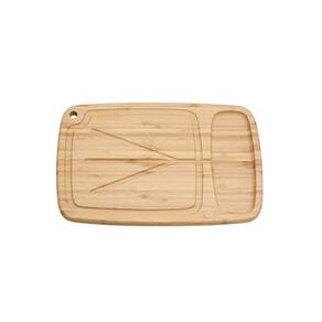 Tabua de bambu para churrasco. A tabua com vinco é pratica e versatil, pode ser usada para cortar carnes, legumes, paes e muito mais. Os vincos sao canaletas para evitar que os liquidos escorram, deixando a bancada sempre limpa. Facil de guardar, possui furo na borda para pendurar. A tabua foi produzida em bambu, material resistente e ecologicamente correto. Duravel e higienico, o bambu é resistente e tem propriedades que evitam a proliferaçao de bacterias.