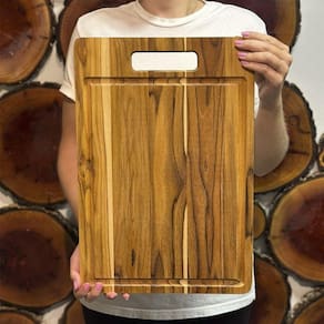 A madeira teca é conhecida há mais de 500 anos, no passado era utilizada na construção naval devido a sua resistência contra água e ações do tempo. Ela se destaca por sua rigidez e coloração variada, motivos estes que elevam seu preço no mercado e a tornam uma madeira nobre em diversos países do mundo. Hoje em dia é utilizada na produção de artigos para decoração, churrasco, entre outros nichos. Estes são alguns dos motivos que fazem a ;Tábua de Carne de Madeira Teca com Canaleta - Stolf um produto especial e indispensável na sua casa.